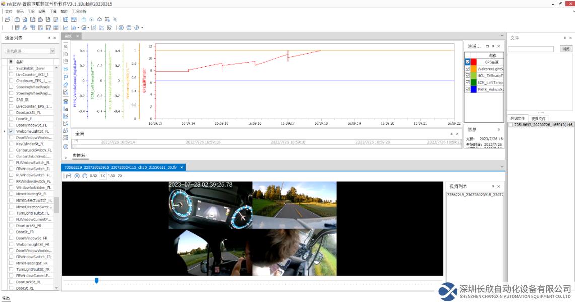 采集的原始报文数据可以通过行业主流的CANOE软件进行数据分析,也可以通过随设备提供的inVIEW软件进行本地分析,实现CAN总线参数、行驶轨迹、视频、音频、开关量等多种数据类型同步回放。软件具有极大的灵活性,可以自定义分析流程和参数对应关系,自动生成各种报告,且用户不受pcense限制。