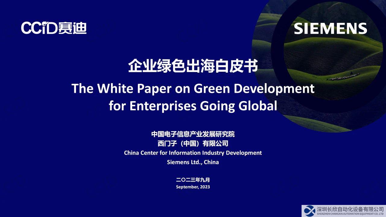 9月19日,在中国国际工业博览会“国际工业可持续发展论坛暨中德绿色制造大会”上,赛迪研究院与西门子(中国)联合发布《企业绿色出海白皮书》。该白皮书旨在阐明中国企业出海面临的国际形势与阶段性挑战,提出数字化绿色化协同的系统解决方案,为企业绿色出海、锻造国际竞争力提供指导与参考,助力企业高质量发展。