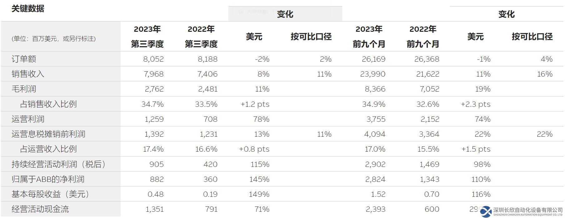 “ABB在2023年第三季度表现强劲,实现了良好的订单出货比,运营息税摊销前利润率再次突破17%,现金流保持强劲,使我们有望在今年实现约30亿美元的自由现金流。”